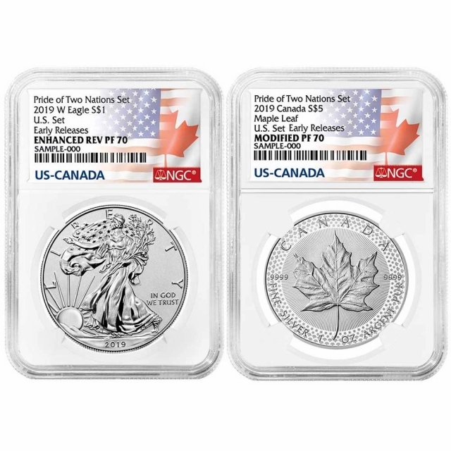 2019美國與加拿大兩國的驕傲精鑄套裝銀幣NGC PF70 ER