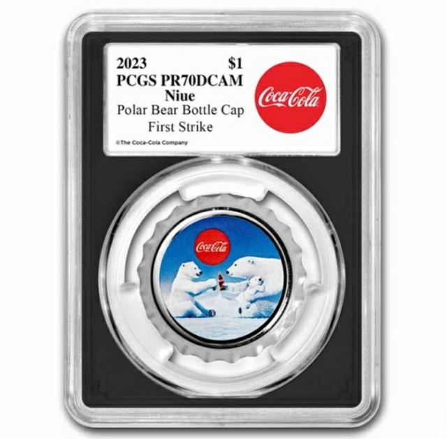 2023紐埃可口可樂北極熊瓶蓋銀幣PCGS PR70 FS