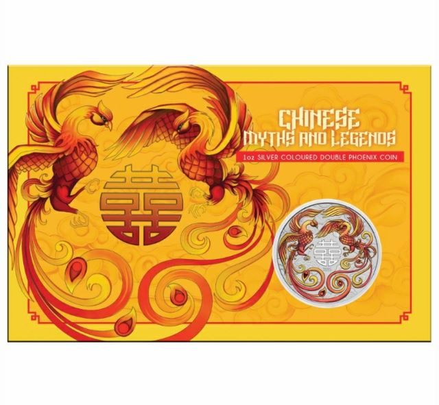2025 AUSTRALIA CHINESE DOUBLE PHOENIX FIRE COLOURED SILVER COIN(IN CARD)