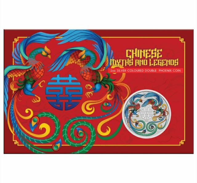 2025 AUSTRALIA CHINESE DOUBLE PHOENIX VIVID COLOURED SILVER COIN(IN CARD)