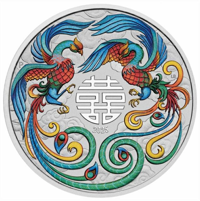 2025 AUSTRALIA CHINESE DOUBLE PHOENIX VIVID COLOURED SILVER COIN